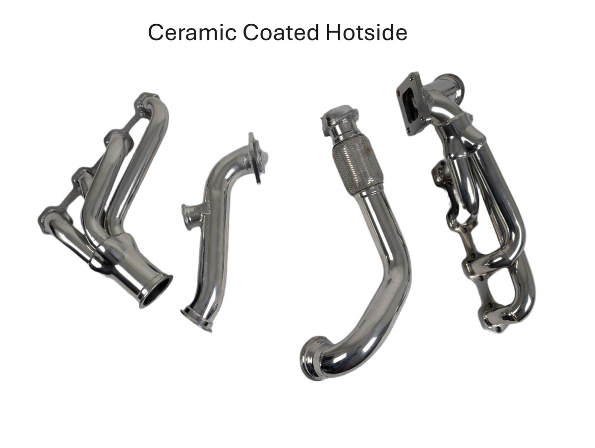 On the streets, our shop car is an absolute animal with the On3 70mm kit installed. We are running 275/60/15 M/T drag radials on the car and it will blitz them 1-3 gear on the street with 7psi. As far as street drivability goes, it doesn't change for the most part till you tip into the throttle. We did run it with just the open downpipe so it was loud, other than that the car ran and drove the same as it did before the install. With our turbo system installed you will retain the power steering but in order to fit the turbo and downpipe, the kit doesn't make room for the Smog pump. So this kit is required to be used for off-road applications only. The On 3 Performance 5.0 turbo system includes all the components to get your turbo kit on your car and ready to get it back up and running. As you will see from our photos, this kit bolts on to your car and was actually designed and tested by us so we know the kit and we know it works. There is not another turbo company on the market that has a kit near our price, proven and come as complete as our system does.