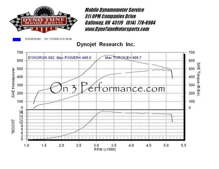 Turbo Option Help: Our On 3 70mm included is a good turbo up to the 500~ rwhp range. Beyond that, we would then recommend either our On 3 76mm journal or ceramic ball bearing option (650-700rwhp max). If you have the supporting mods and plan to be in the 600-800rwhp range, your best option will be our On 3 7875.