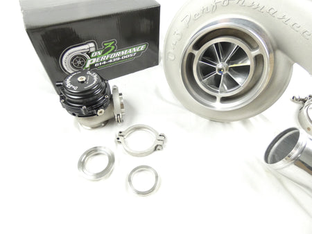 On 3 Performance is proud to announce the release of the 1999- 2013 Chevy / GMC 1500 & 2500 4.8, 5.3, 6.0l T6 Upgrade to our single turbo system. This kit will take your Chevy truck to a whole new level. The base S480 is 1000hp capable with options to upgrade to our 86mm unit for those wanting to push farther. This upgrade is not 100% bolt on, this is to upgrade your existing On3 Performance T4 chevy truck it. We tried to make it as simple as possible for everyone; however with additons like a second 44mm wastegate and a larger diameter downpipe, it leaves a little work on your end to make it all jive. The T6 turbo will require you to weld on the flanges provided in your 44mm wastegate box to the crossover to maintain proper boost control, without the second gate you will experience boost creep. As you know by owning it, our original kit utilizes a stepped 3.0- 3.5" downpipe. This upgrade will use a 4.0" downpipe from the turbo back. We are only supplying the downpipe on this upgrade. Then we provide a 4" flange and clamp for you to build from. This will not connect to the exhaust currently on the truck nor do we recommend stepping the 4" down in anyway if you are looking to maximize the performance gain. If you have a 99-06 truck, it will require the cold side upgrade as well. The cold side tubing changes to the 07+ style and the intercooler gets flipped. You will notice this when you select the model year and the price changes. This is just to get you into the correct cold side tubing. This will also come with an intercooler bracket to flip it over as intended.