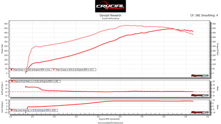 Note, while testing, the factory catback was EXTREMELY restrictive and a high flow catback system is almost required or open downpipe. Without getting deep into the drive pressure data vs. boost, its much easier to just upgrade if you plan to run much more than 5-6psi.