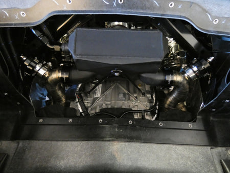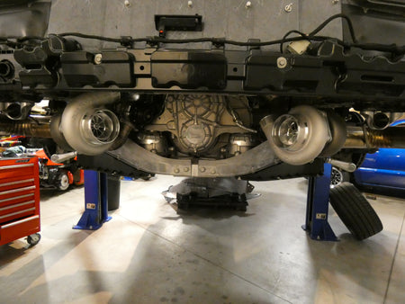 We have worked diligently to bring a reliable twin turbo kit to the C8 market! This kit uses our newest oil-less, billet center section units to allow for a much cleaner and simple install. No more need for scavenge pumps and oil drain issues, no more drilling your oil pan or pumping the hot oil back through your valve covers. The base 57mm turbos out of the box have proven to support anywhere from 500 wheel all the way up to 800 rear wheel horsepower. These are a great option for the stock engine guys. For the guys looking to make even more power we have turbo options that will range you from the 500hp-1300hp depending on the turbo options you choose. The rest of the kit is up to the task out of the box.