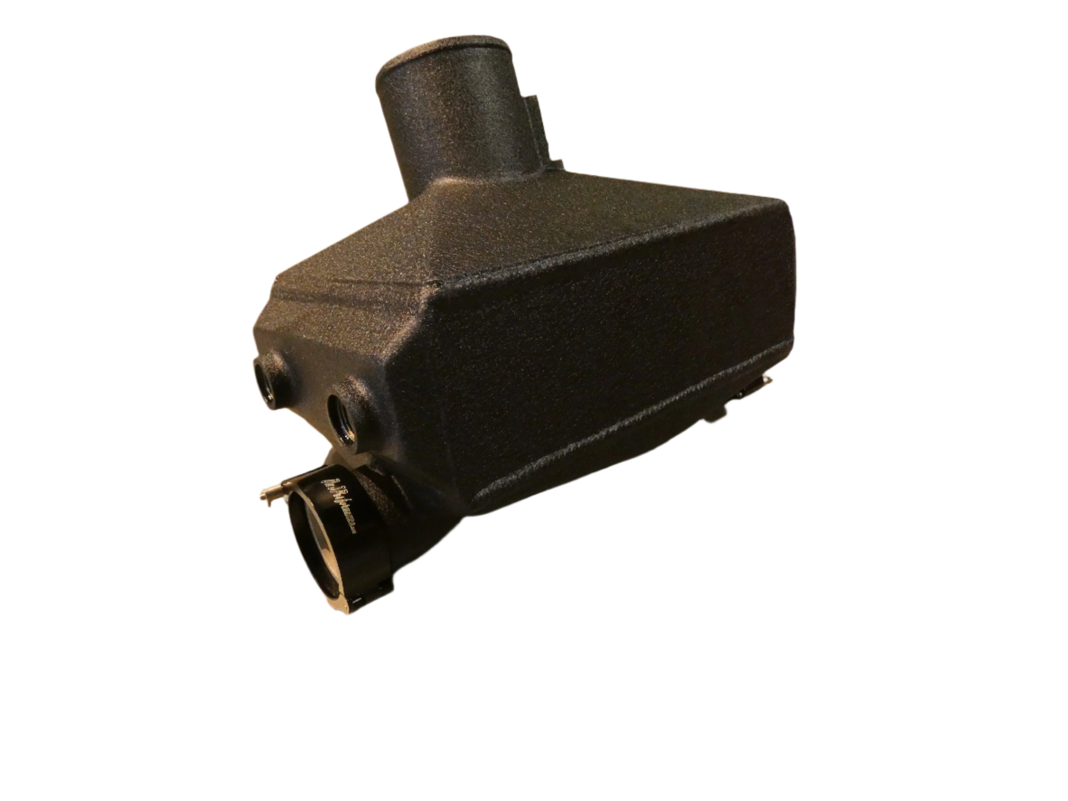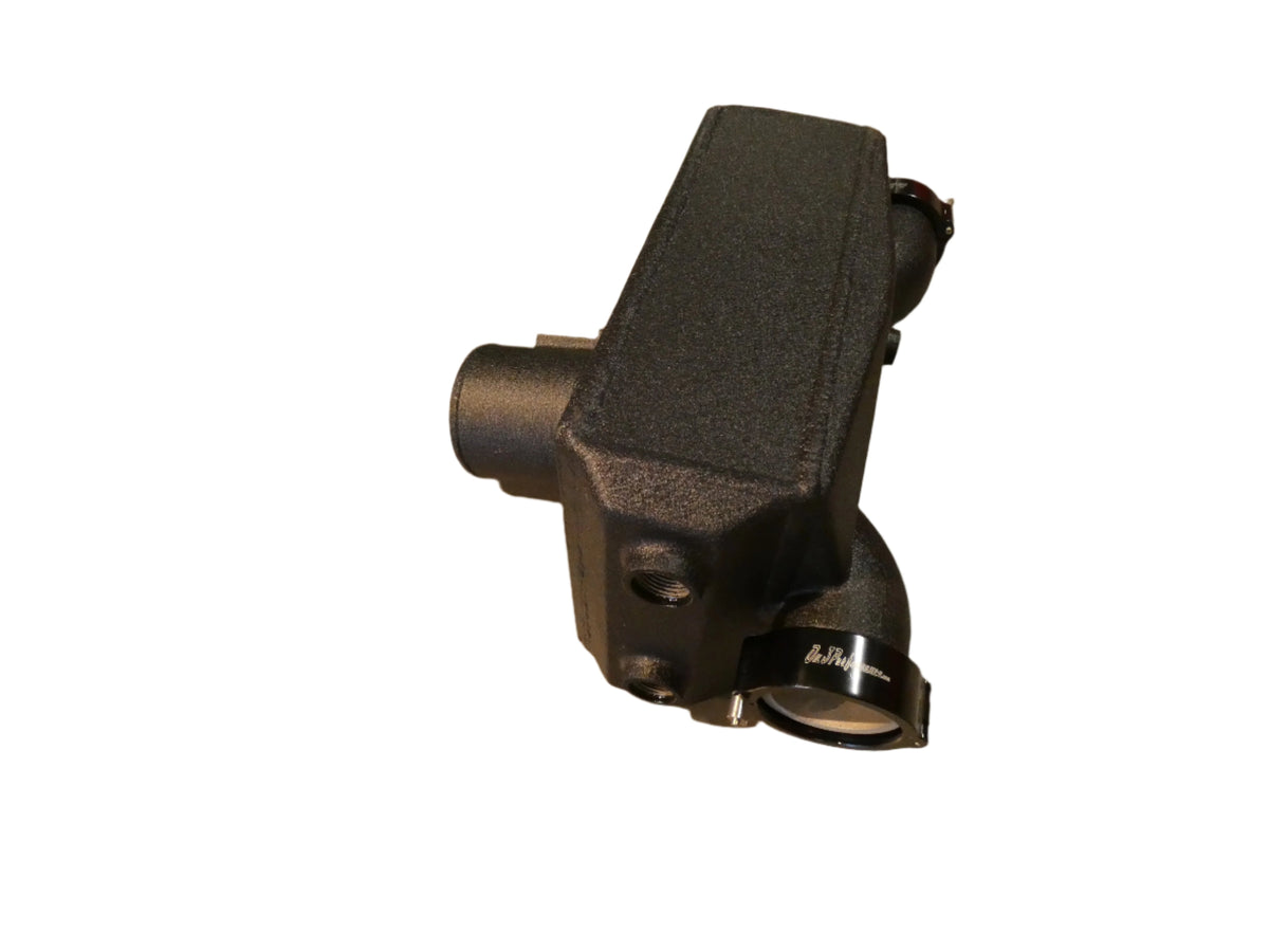 Coldside Details: This kit will come standard with our custom C8 intercooler, we specifically made this around engine bay with the allotted space available. This is a design that buts directly up to the throttle body with a single 4" coupler and has the maf flange built in with a brace that bolts it to the top of the transmission. This keeps the coupler from being able to be blown off since the intercooler is in a fixed location. This limits boost leaks from occurring. We also opted for our vanjen style clamps with orings and quick release pins on the inlets of the intercoolers where the titanium charge pipes attach so that you never run into the issue of blowing these off and having to remove the trunk cover to fix it. We wanted to ensure this was a reliable as possible and could be buttoned up neatly. This system uses dual On3 50mm BOV as well to make sure you have no compressor surge.