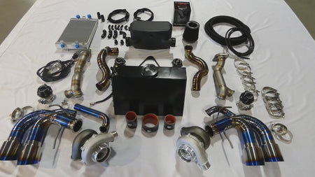 On3 Kit Upgrades: This is going to be for the guys with a Built engine, or plans to build an engine. This would be 750- 1300hp capable depending on your choice of turbos. We have upgrades ranging from Our gen 2 GTXx Oil-Less 67mm billet wheel turbos to our OL6466 and OL6766 turbos in the drop downs. The OL6766 is the most powerful combo we offer with direct bolt on at this time. Depending on your power goals and fuel type used on e85 this will require an aux pump at minimum and we strongly suggest port injection past the 800hp levels. Some guys will use meth as a fuel adder, we prefer to use the port injection system to ensure each cylinder is fueled as evenly as possible.