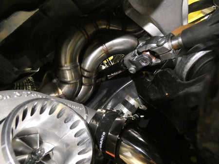 We designed this shaft to replace the large-diameter factory steering shaft. This gives you much-needed clearance when installing/ building larger headers and turbo manifolds. Many people have to dent their headers or shift the engine over to keep their headers from rattling on the factory steering shaft. Now we have the perfect solution!