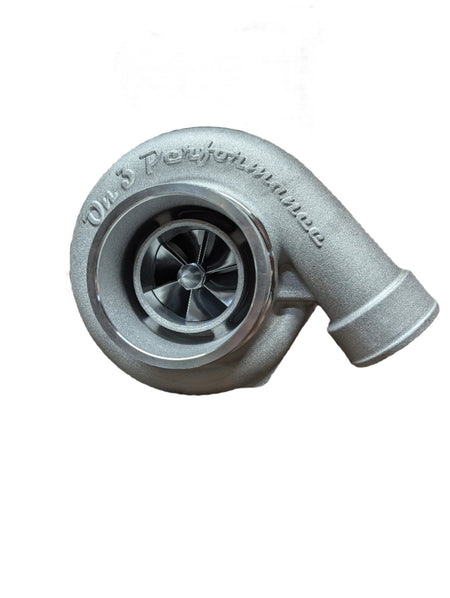 On 3 Performance is currently stocking and shipping daily the newest addition to our turbo product line. This turbo will be capable of supporting 650HP while a majority of our customers running these are in the 400-500 range on 4-cylinder applications. Our primary application here, we run them on our Twin Turbo Mustang kits and make a very wide spectrum of power from 450-1000hp. They are very quick into boost, very reliable when properly maintained and will make great power.