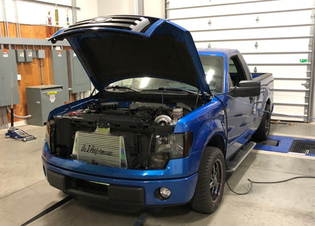 On the flip side, if you are going for a build more catered toward racing, you can't pick a better platform. The 5.0 coyote engine makes some of the highest hp numbers per pound of boost that we have tested with. Not only that, the bottom is is known to already handle the power for daily driving duty as well. Although anything can happen when modifying your vehicle, if you have a good tune the 11-14 trucks have been proven to be reliable at the 600-650 level and 15-17 trucks we are making 750-800. You will see people making well over these numbers including our shop trucks but those are what we consider conservative power. Our shop truck that you see in the photos currently is the fastest 11 - 14 Stock engine F-150 in the country running a 10.55 @ 129. Clearly we are pushing limits and its on the ragged edge but we did make 816rwhp on our dyno during testing.