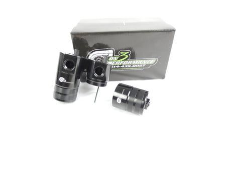 On 3 Performance vented catch can kit. This kit can be used with forced induction, or NA applications. In a forced Induction application it is extremely important to make sure the catch can kit is vented to atmosphere. This will allow the crank case to breath during Wide open throttle situations. This is important not only for the health of the engine but also the health of the turbos. The catch can kits you see on the market that are tied back into the intake manifold will not work on a boosted application. It will just pressurize the catch can and engine if you run this style on a boosted applications. These are super easy and quick to drain. The lower half of the can unthread so you can unthread them and empty them quickly at the track. This kit will include: