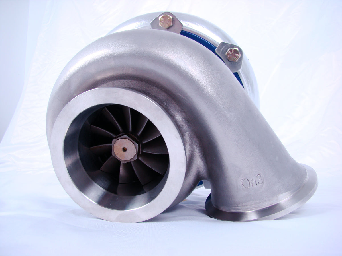 After years of selling this turbo, its has proven its point with being an affordable turbocharger that backs it up with great HP numbers. This turbo will be capable of supporting 750+ rwhp and have customers on the lower end of the power range around the 400's on low boost applications(Our 70mm is rated up to 680rwhp). On of the first cars our turbo was tested on was a 93 Cobra, 347ci and going 10.1x's on 8psi. No physical dyno numbers on that specific car but this car was running 13psi on our 70mm On 3 Performance turbo prior to the upgrade to accomplish almost identical track number.