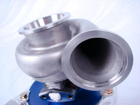 We have been designing a lot of our turbo systems around our newest exhaust housing and its time to bring that same option to our customers. This is our already proven and popular On 3 76mm turbocharge but paired up with our newest exhaust housing option. We tooled up and has our .68 and .96ar exhaust housings re-designed to incorporate the v-band inlet design to eliminate the traditional t-4, 4 bolt housings. This has a laundry list of benefits and the main two are adjustability and the easy of installation. When using a traditional flange, you do not have ANY adjustment, it bolts in place and if your flange is off, your stuck with it. In this case, you simply would rotate the turbo slightly to the position needed and tighten the turbo down. You now also only have 1 nut to tighten down and secure the turbo in place, it doesn't get much easier than that. We cannot leave out the fact that its also cast from stainless steel so your not going to have any rust after a few months of sitting or driving. The standard iron housings will rust if they are not coated.