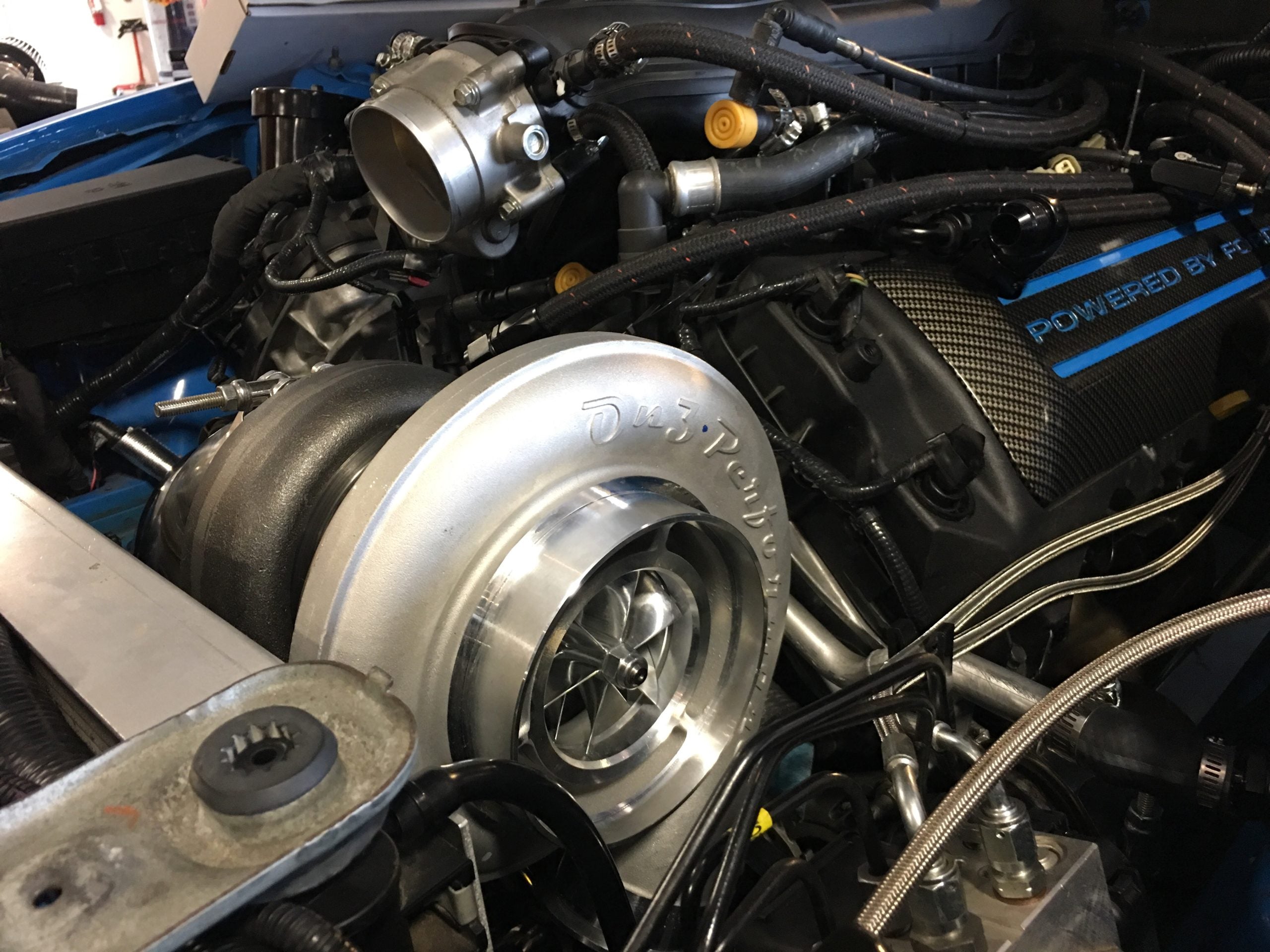 During the testing phase on this turbo, we had it strapped to our shops 2011 Mustang 5.0 with factory automatic transmission. We made 933rwhp with this turbo on roughly 15psi. This is a very efficient turbocharger with our newly developed extended tip billet wheel. Our turbo also is unique how it comes standard with the On 3 anti-surge race cover standard. Another great feature is how the compressor cover will allow you to either v band the outlet or use a standard coupler. If you wanted to go with a coupler connection, you can simply just cut the v band off the end of the compressor cover! Cold Side Details: