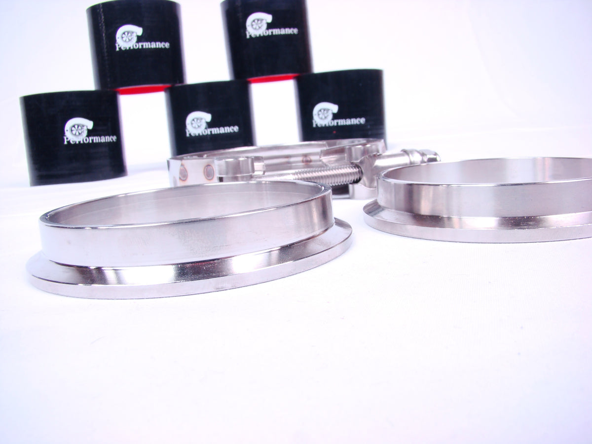 Kit includes: 2x 3" Stainless Weld Flanges, 1x 3" V-Band Clamp